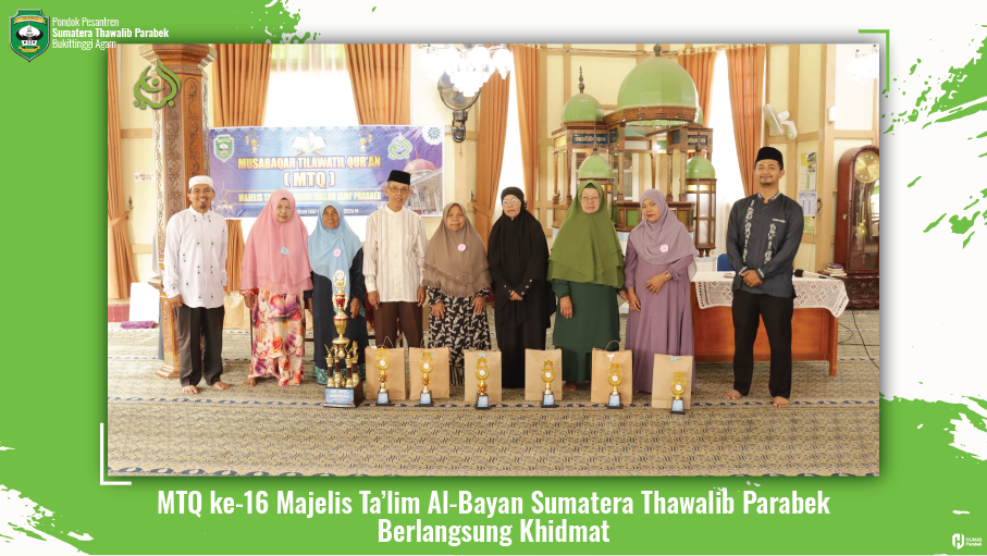 Parabek, 9 Maret 2026 — Majelis Ta’lim Al-Bayan Sumatera Thawalib Parabek kembali menggelar kegiatan Musabaqah Tilawatil Qur’an (MTQ) ke-16 pada hari Senin, 19 Ramadhan 1447 H bertepatan dengan 9 Maret 2026 M. Kegiatan ini berlangsung dengan penuh khidmat dan diikuti oleh para jamaah majelis ta’lim dari berbagai daerah sekitar.